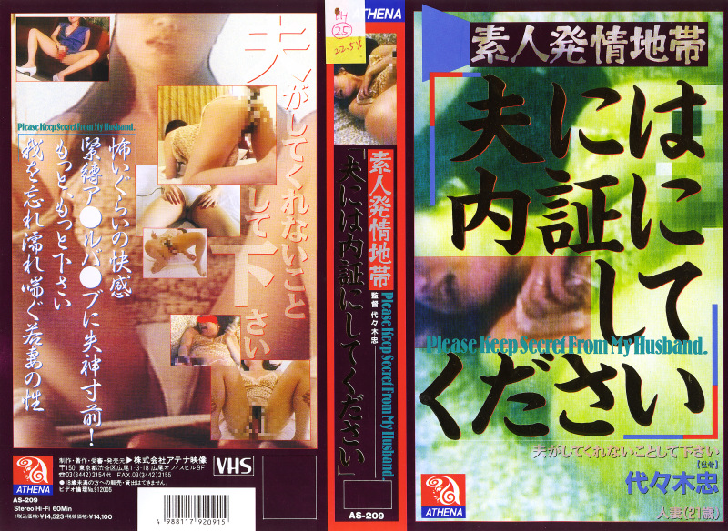 素人発情地帯 「夫には内証にしてください」|品番91265│アテナ 2026.01.04 発売日 : 2010-12-30収録 : 52分シリーズ : 素人発情地帯 ジャンル : お宝映像 オナニー アナル バイブ・ディルド 監督 : 代々木忠 メーカー : アテナ映像 レーベル : アテナ 品番 : 91265価格 : ¥90~